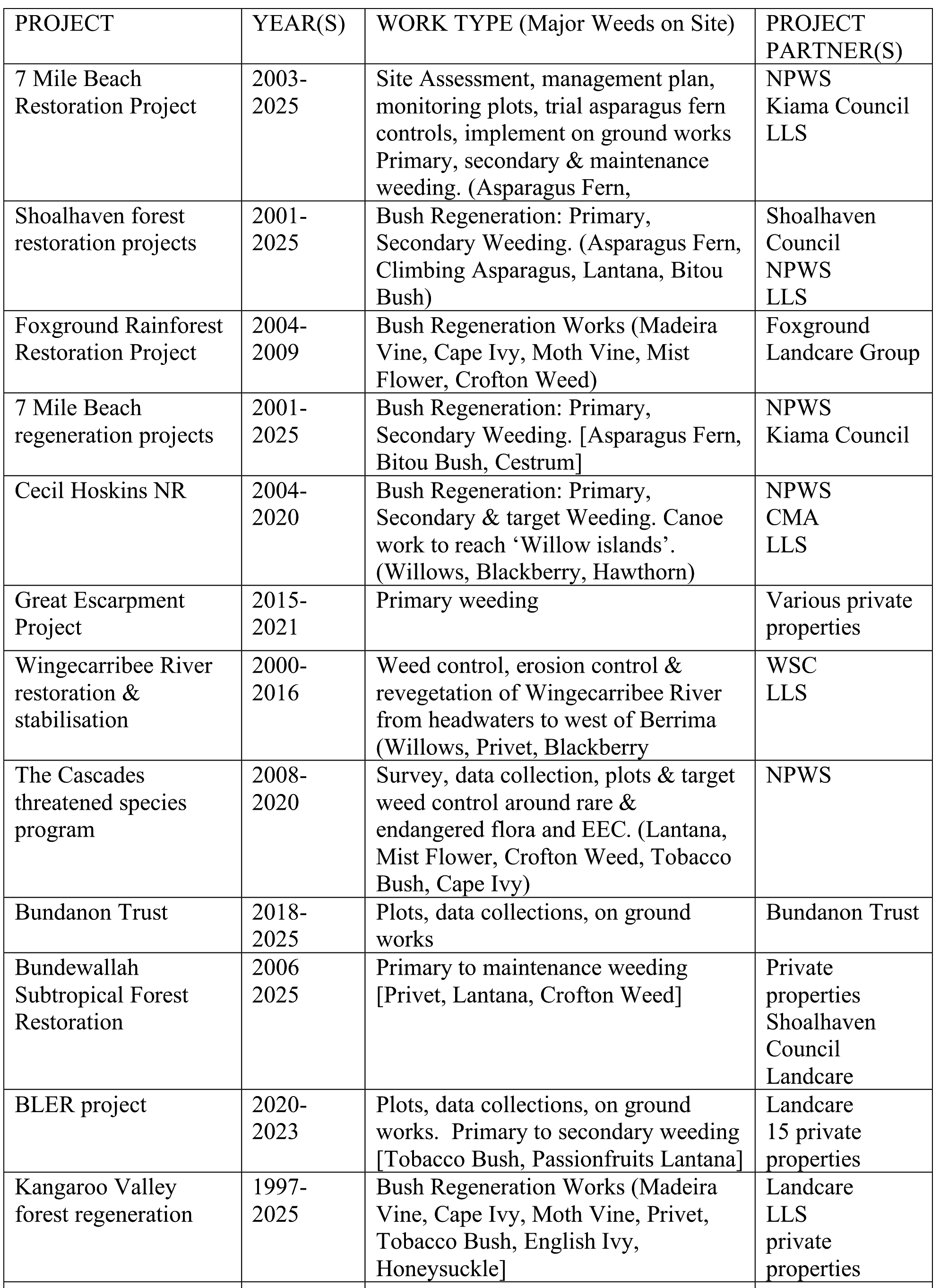 Current and past Projects
